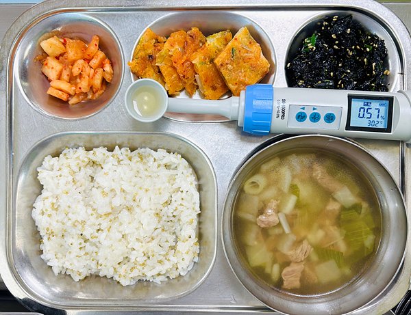 고칼슘차조밥 소고기뭇국 오징어김치전 실파김무침 깍두기