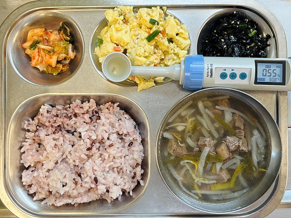 고칼슘흑미밥 맑은육개장 삼색달걀찜/두부구이 실파김무침 배추김치