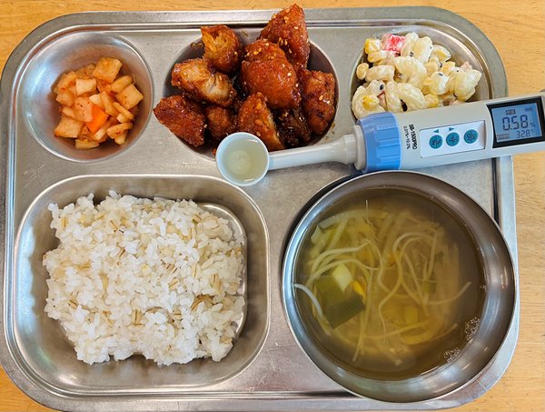 고칼슘압맥밥 콩나물무채국 양념치킨강정 마카로니콘샐러드 깍두기