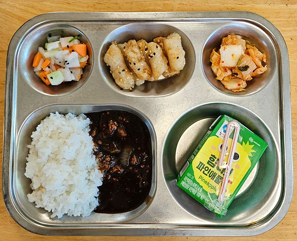 7월 9일 (수) : 돈육자장덮밥, 돼지고기탕수육, 채소피클, 배추김치, 파... [2025-07-09]