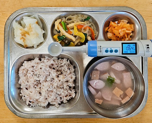 7월 17일 (목) : 고칼슘흑미밥, 맑은부대찌개, 파프리카어묵잡채, 양배추찜... [2025-07-17]