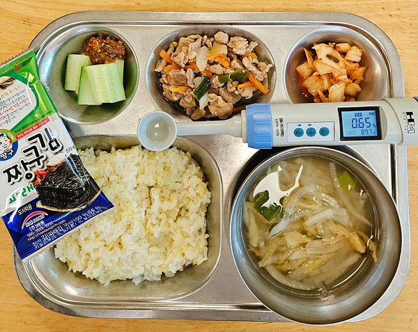 7월 17일 (목) : 고칼슘흑미밥, 맑은부대찌개, 파프리카어묵잡채, 양배추찜... [2025-07-17]