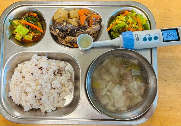 고칼슘친환경잡곡밥 쇠고기뭇국 꽁치살무조림 애호박나물볶음 오이소박이