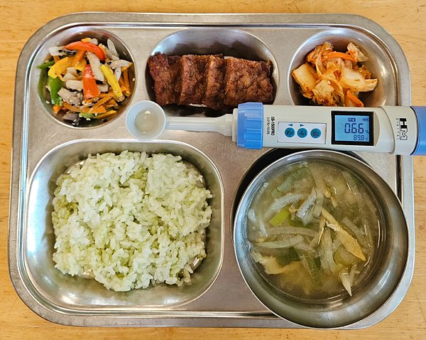 7월 1일 (화) : 고칼슘현미밥, 근대된장국, 쇠고기낙지볶음, 미역줄기볶음... [2025-07-01]