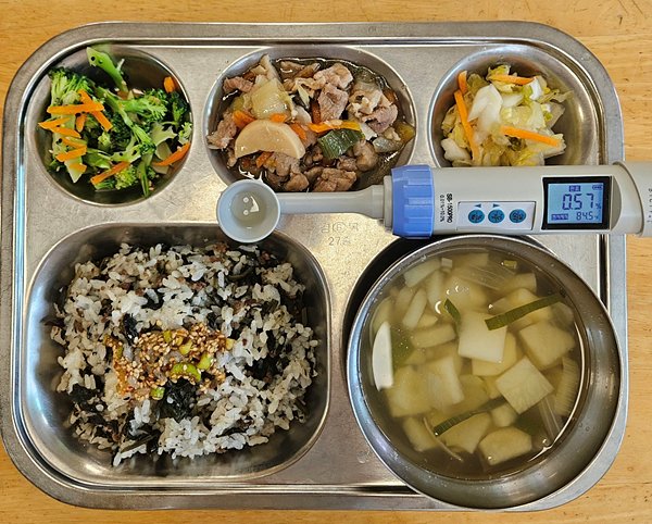 5월 26일 (월) : 고칼슘기장밥, 쇠고기미역국, 참치미역국(대체), 어묵채... [2025-05-26]