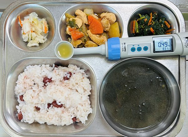 고칼슘밤콩밥 황태미역국 순살간장닭찜 깻잎순무침 백김치 아이스슈