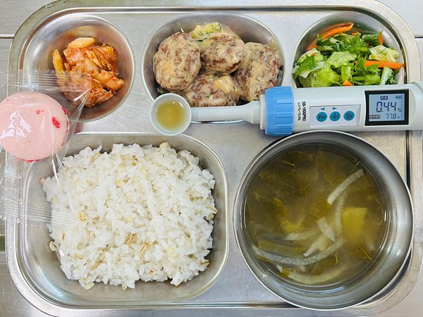 고칼슘압맥밥 시래기된장국 크림미트볼조림 유자그린샐러드 배추김치 딸기마카롱