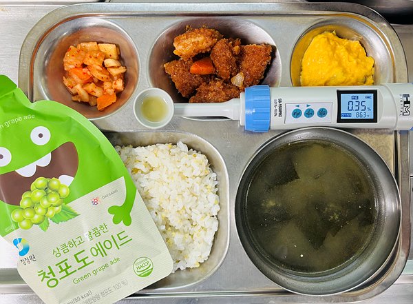 고칼슘기장밥 들깨미역국 등심돈까스/소스 단호박샐러드 깍두기