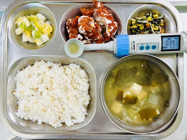 고칼슘압맥밥 두부미소된장국 슈프림양념치킨 콩나물김가루무침 백김치 *스트로베리먼치킨이 후식으로 추가되었습니다.